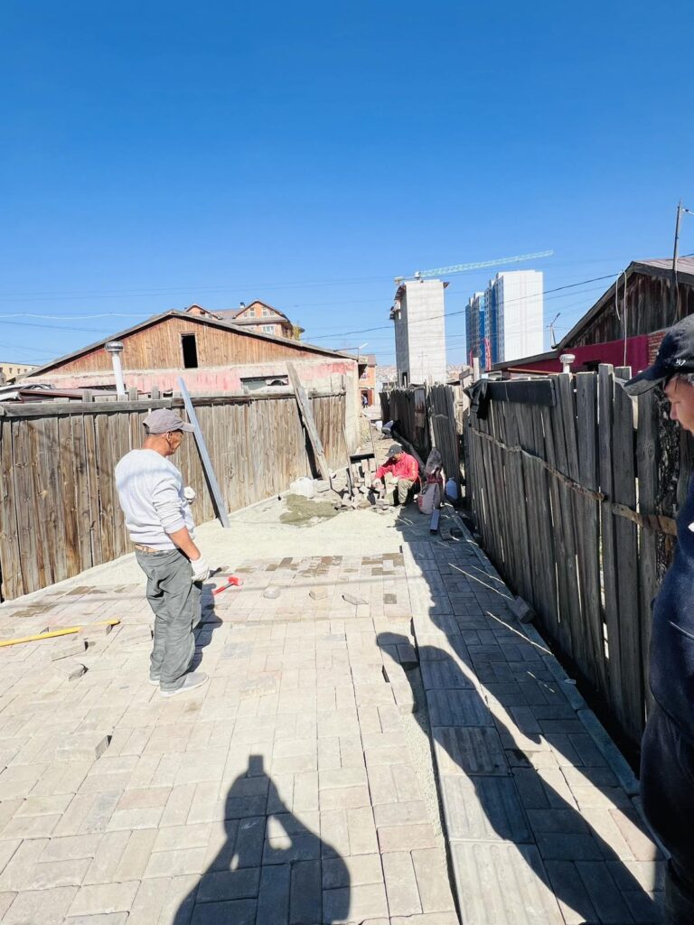 Нийслэлийн гол, гудамж замын явган хүний замыг байгалийн чулуугаар хавтангаар шинэчилж буй. Өнөөдрийн байдлаар 100 мянга гаруй м.кв явган хүний замыг шинэчлээд байна. Тэгвэл явган хүний замын хуучин хавтганаар гэр хорооллын нарийн гудам, гудамж талбайг тохижуулж байна. Тухайлбал, СХД-ийн 8, 15, 18, 20, 25, 27, 43 дугаар хорооны нарийн гудамжны явган замын нийт 1500 м.кв талбайг хуучин хавтангаар тохижуулаад байна. Тохижилтын ажлыг СХД-ийн “Захиалагчийн алба” ОНӨААТҮГ гүйцэтгэж байна.