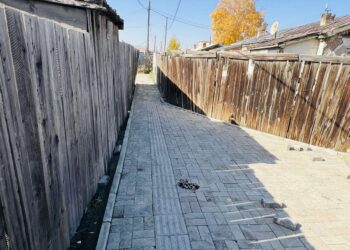 Явган хүний замын хуучин хавтангаар гэр хорооллын нарийн гудамжийг тохижуулж байна