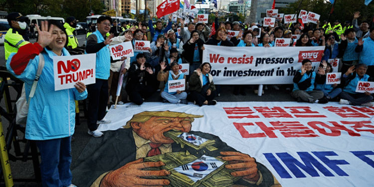 Өмнөд Солонгосын олон зуун иргэн нийслэл Сөүл дэх АНУ-ын Элчингийн байрны ойролцоо “No Trump!” жагсаал өрнүүлж байна. Эндээс хэдэн зуун метрийн цаана Кёнбокгун ордны үүдэнд ч жагсаал үргэлжилж байгаа бөгөөд тэд “No China”, “Chinese Communist Party out!” гэсэн уриа лоозонгоороо ялгарч байна. Өмнөд Солонгосын ерөнхийлөгч Ли Жэ Мён энэ долоо хоногт АНУ, Хятадын удирдагчдыг хүлээн авч буйтай энэ хөл хөдөлгөөн холбоотой.